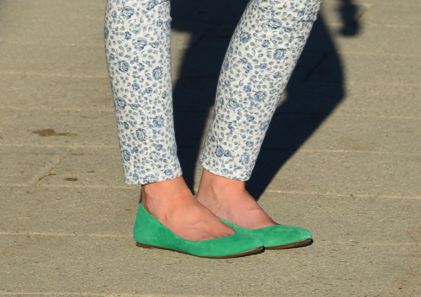 oh my goodness. why have I not discovered your blog before? Your style is so fun yet classy and chic! YOu're not afraid of colors and layers of accessories and I like that. You remind me of Atlantic Pacific, have you heard of that blog? Anyway, I absolutely adore your style. love the green shoes with blue floral pants!