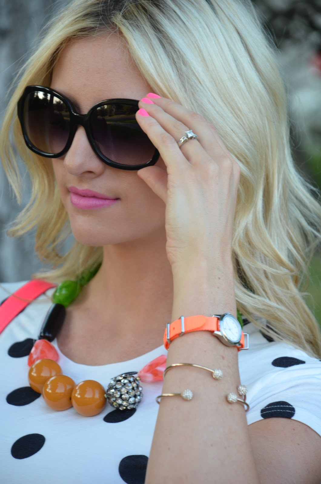 Style Aug. 27, 2012 Bright Highlights Share Shirt: Madewell | Skirt: J.Crew {old} | Shoes: Madewell | Bag: Urban Outfitters | Sunnies: Madewell {on sale!} | Jewelry: Anthropologie, J.Crew Anyone else have too many polka dots in their closet? 😉 Happy Monday! Thanks for reading. xo