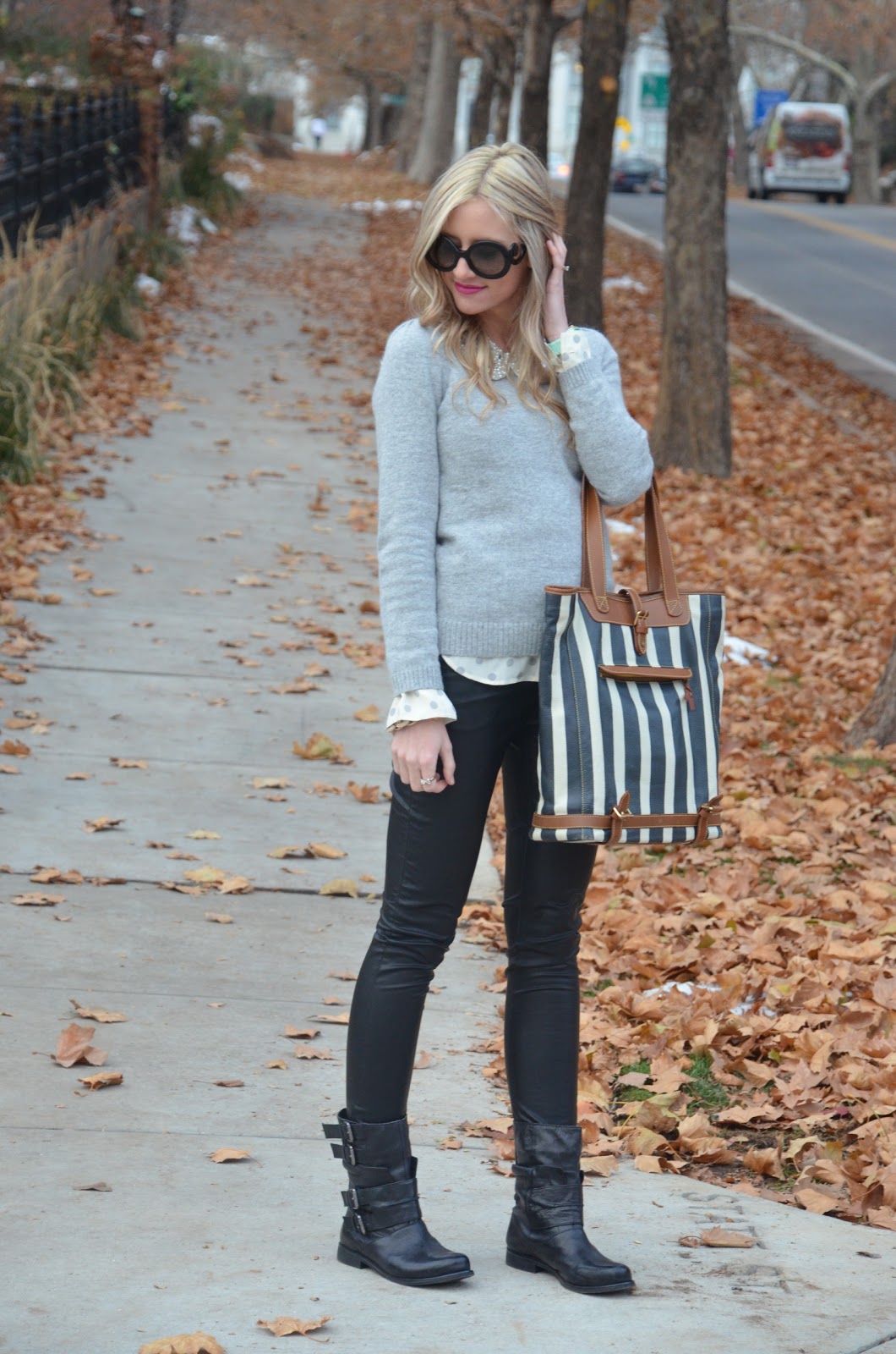SO cute as always! Love your leather pants!!
