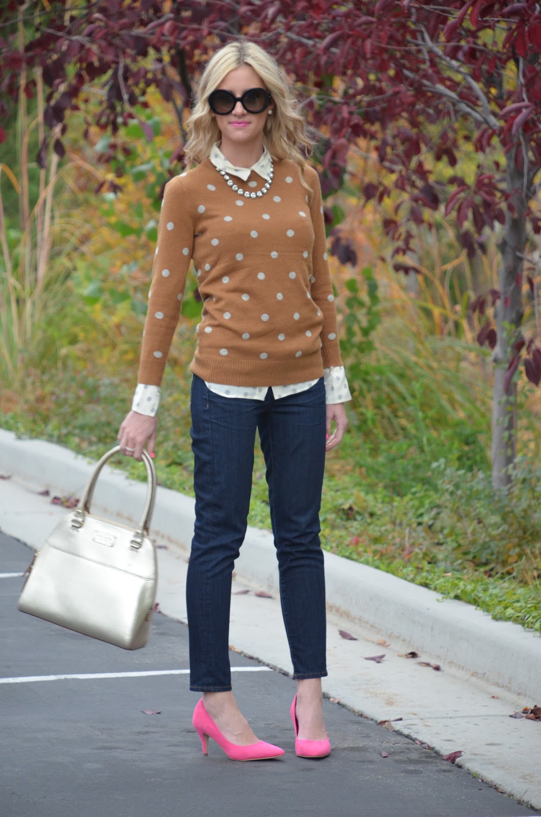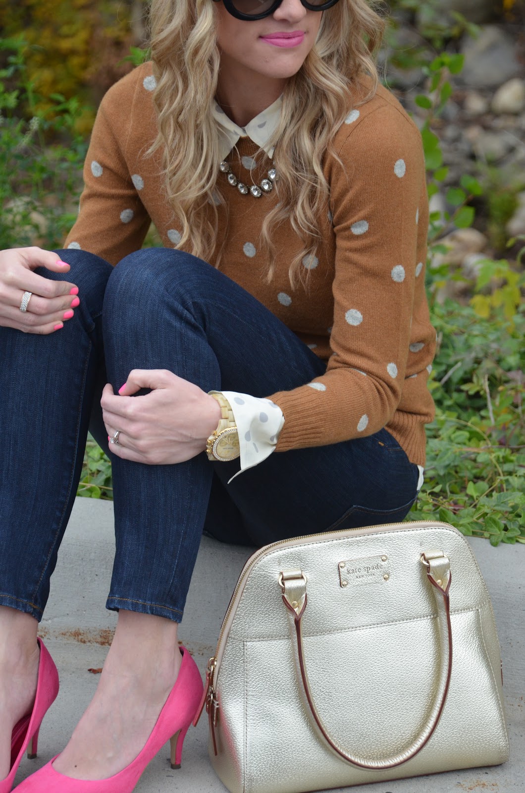 Shirt: J.Crew | Sweater: J.Crew {on sale!} | Jeans: J.Crew | Belt: J.Crew | Shoes: H&M | Sunnies: Prada | Bag: Kate Spade |